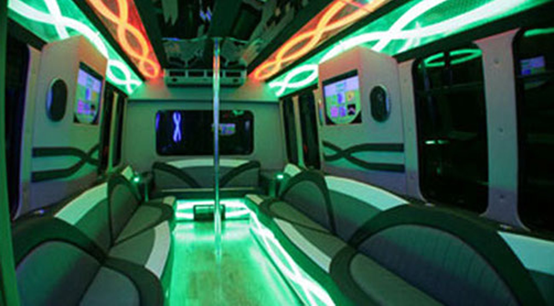 Picture a limousine inside of a spacious bus. Limousines can be cramped and impossible to stand up in. Our party bus is easy to stand up and move around in.